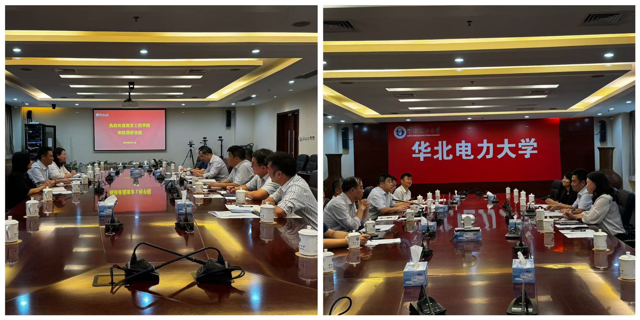 9月12日,我校一行赴华北电力大学(北京校区)开展调研交流,得到党委常委、副校长刘威等领导的热情接待。座谈会上,陈建华介绍了我校在应用型人才培养、产教融合以及电力特色学科建设等方面的实践与探索,希望两校在人才培养、科研合作、师资交流等领域进一步拓展合作空间,共同服务电力行业人才需求。刘威从学生工作、学科布局、校企协同等方面总结了华北电力大学的工作举措与先进经验。与会双方围绕招生就业联动机制、职业生涯教育体系、AI背景下电气工程学科发展、学生创新能力培养等议题进行了广泛探讨。