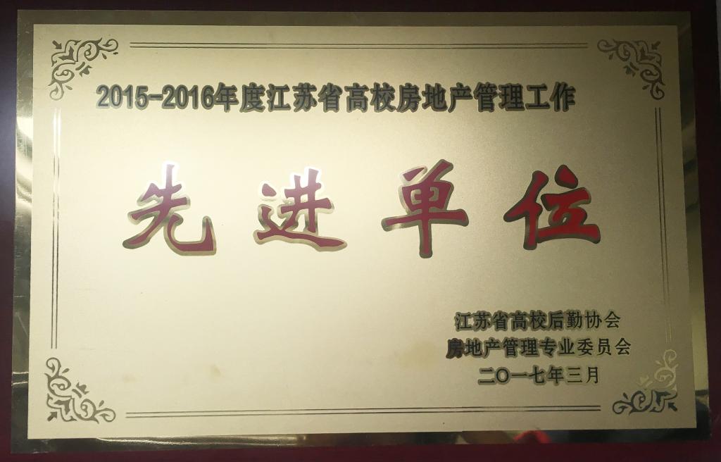 日前,江苏省高等凯发后勤协会房地产管理专业委员会2016年年会召开,我校获“2015-2016年度江苏省高校房地产管理工作先进单位”称号。