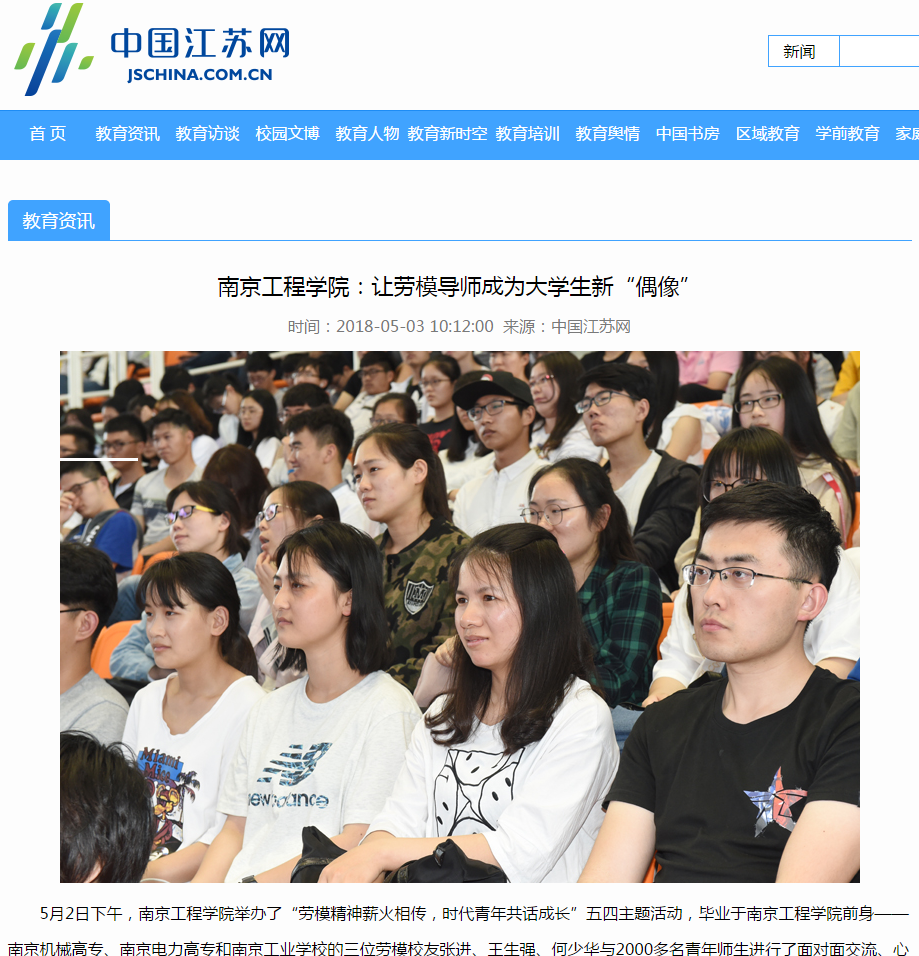 《中国江苏网》:凯发k8官网:让劳模导师成为大学生新“偶像”