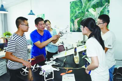 虽然暑期临近,不少学生在考完试后纷纷离校,但是凯发k8官网大学生创业园里还是很热闹。就读于该校通信工程专业大二的范志伟(图中蓝衣少年)是学长徐飞创办的南京福尔摩斯智能科技有限公司的一名见习生,期末考试间隙,他来到这里与小伙伴们共同研究起了公司用于航拍的小飞机的性能。他告诉记者,他已经申请暑期留校,打算利用两个月的时间参与更多的创新创业活动,为自己今后走上社会攒经历、加筹码。